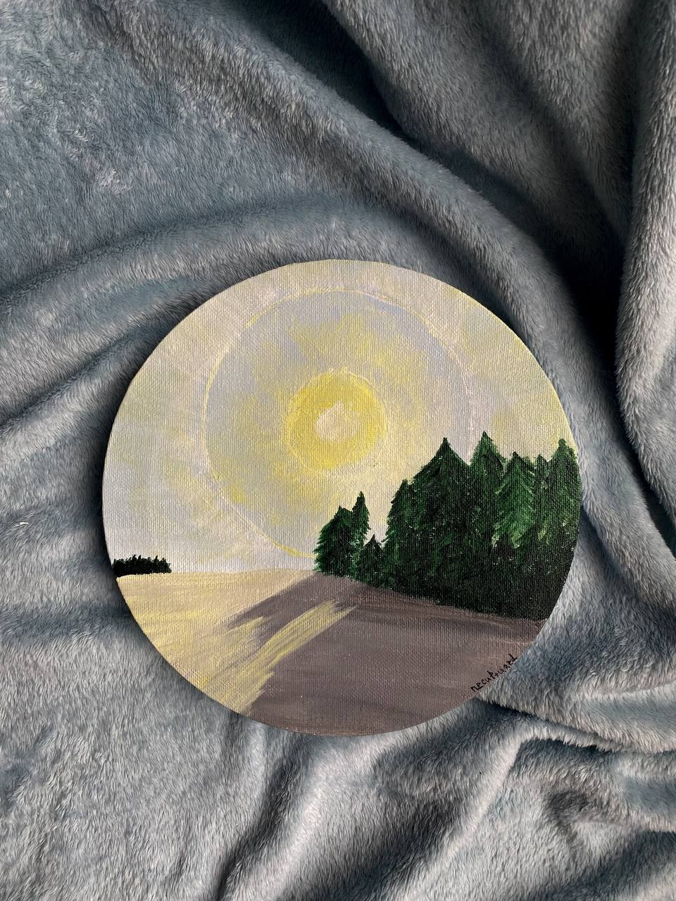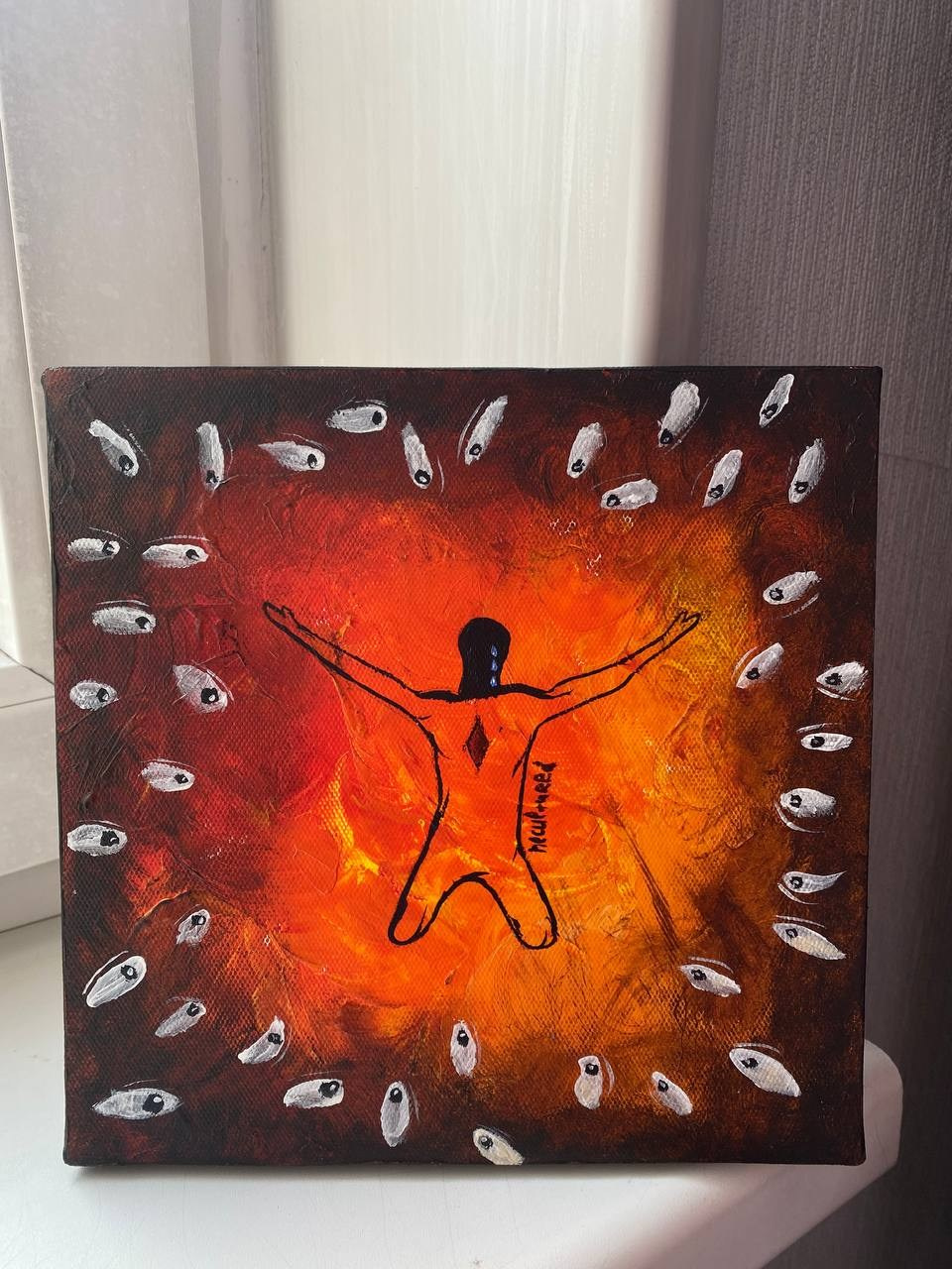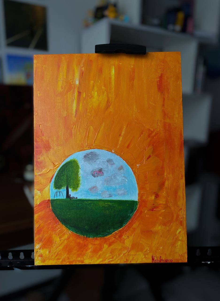 На картине изображён густой, лес. На заднем плане — кричащий человек, который заблудился и пытается найти выход. Его отчаянный крик эхом разносится по лесу.